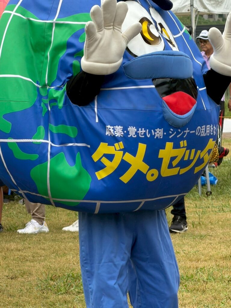 薬物乱用防止キャラクターの「ダメ、ゼツタイ男」もやって来ました。
