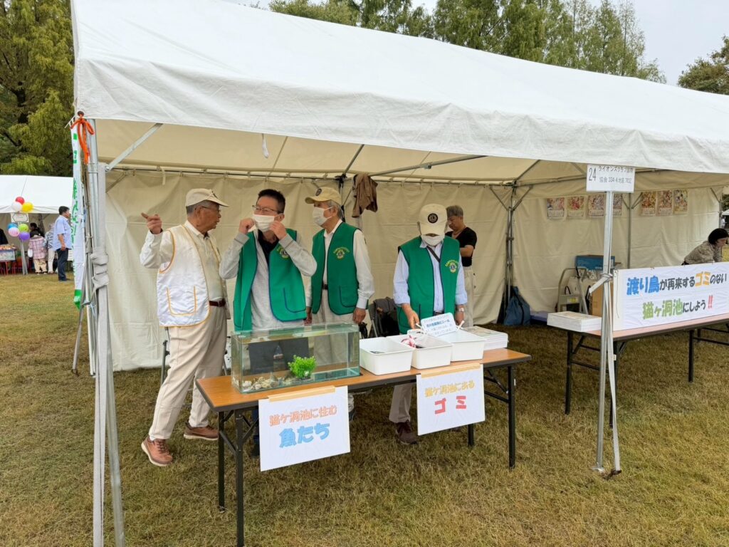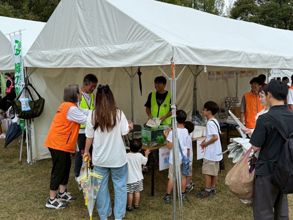 ブースでは「猫ケ洞池のゴミなどを清掃して、そこに住む生物の環境を整えよう」をテーマに、猫ケ洞池に住む魚を入れた水槽とゴミのサンプルが展示されていて、水槽の前には多くの子供達が集まりました。