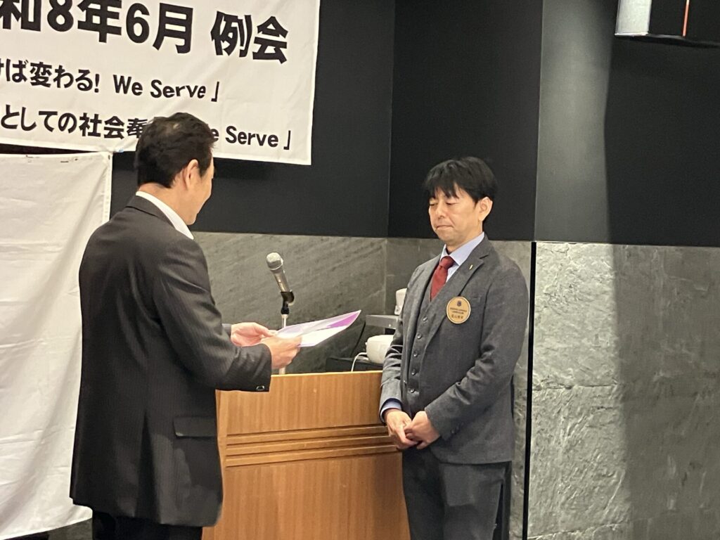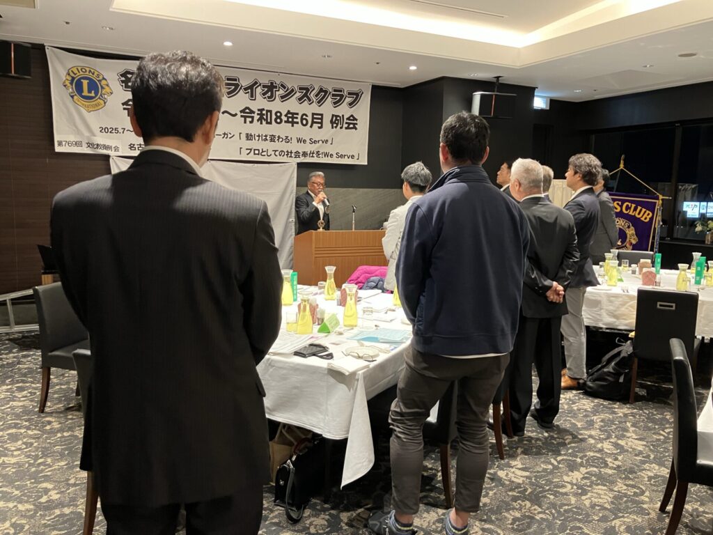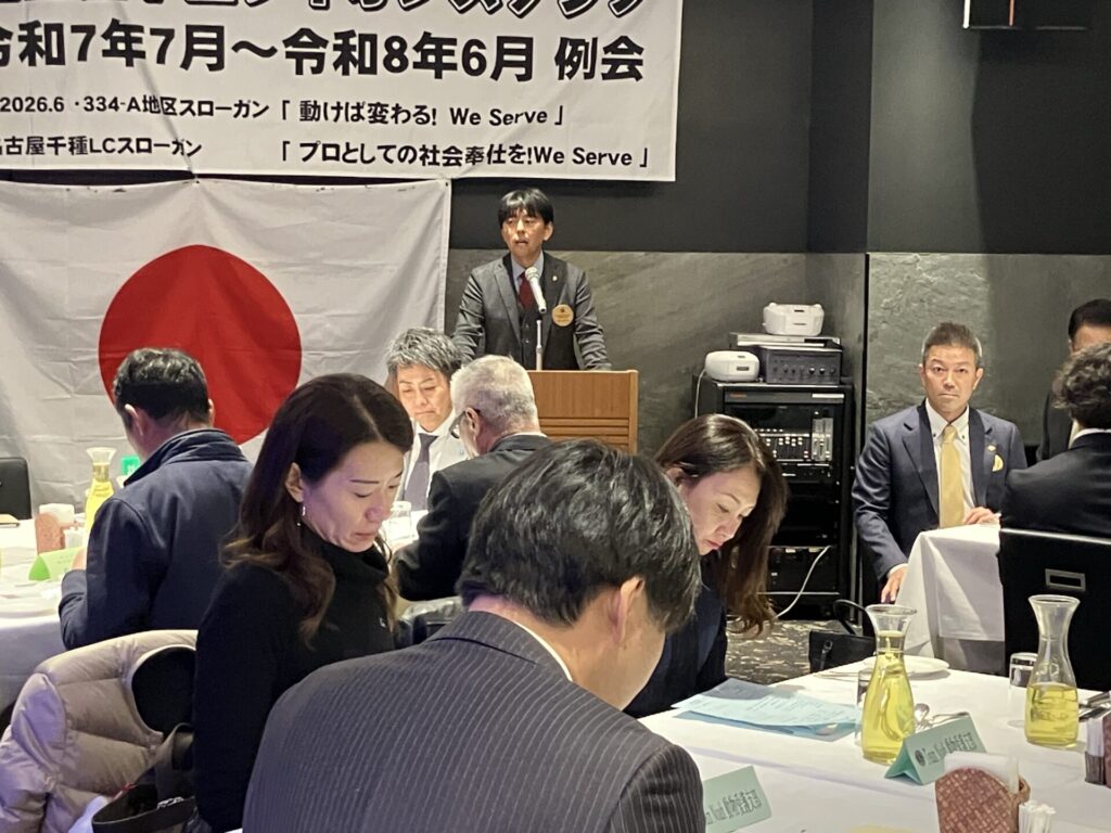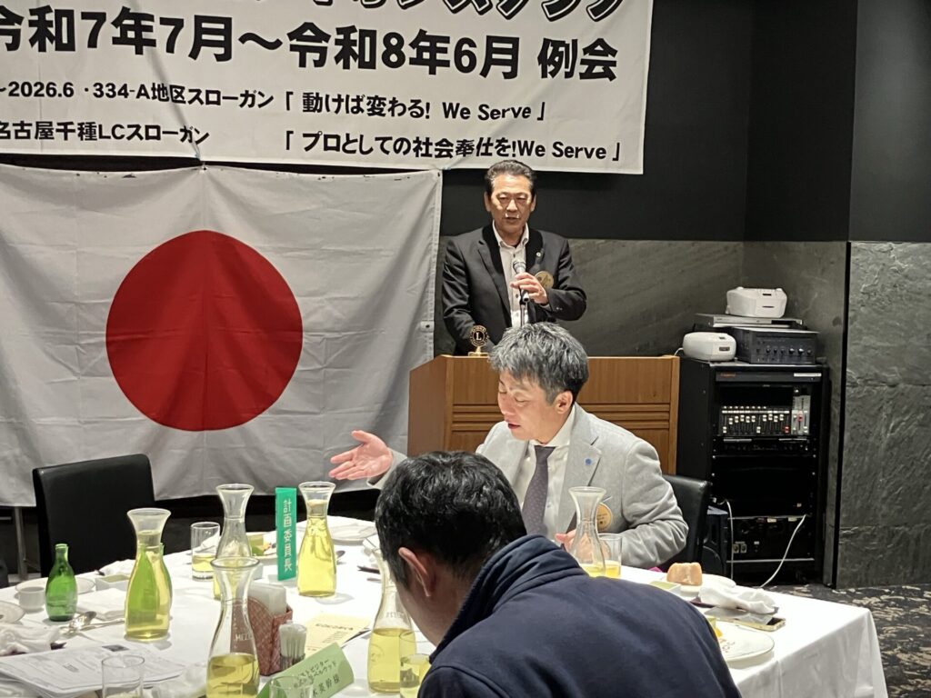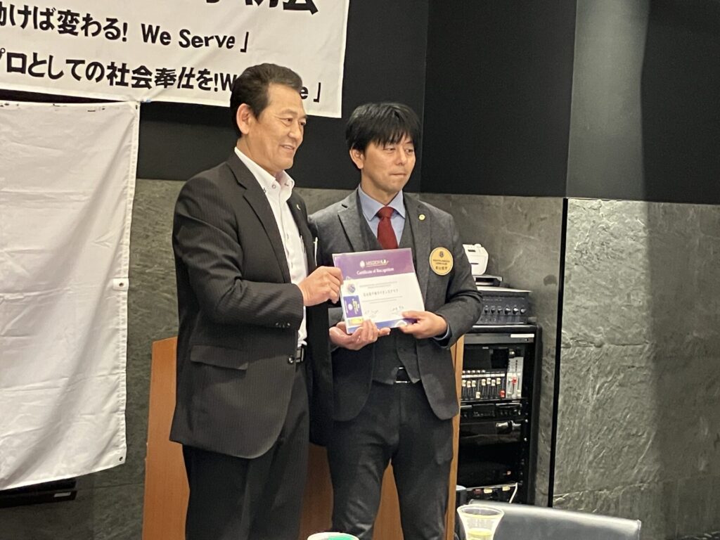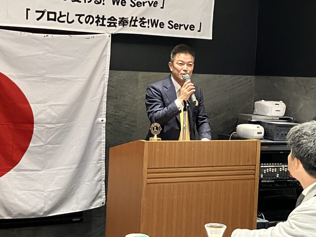 下川 健、同じく地区会員増強副委員長 L近藤 資浩及び地区国際事業委員長兼キャビネット副幹事 L中島 将登が参加され、例会体験者として株式会社ベルウッドの代表取締役 鈴木 英幹 様が参加されました。L下川 健は能登半島地震に対するライオンズクラブからの交付金について、L近藤 資浩は災害援助に際して実行する人員が多くないといけないとして、会員増強が必要であると強調されました。本例会では、当クラブがミッション1.5日本独自表彰を受け、表彰状を受け取ったことも披露しました。本日の修正後の出席率は88%、ドネーションは9万円超となりました。