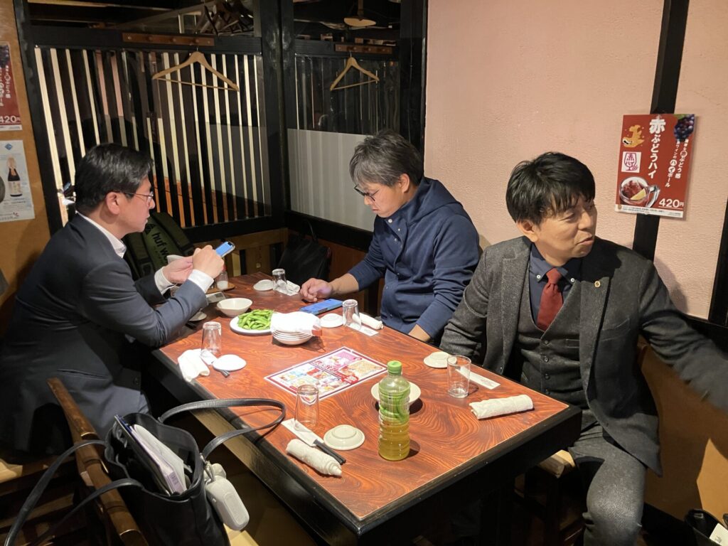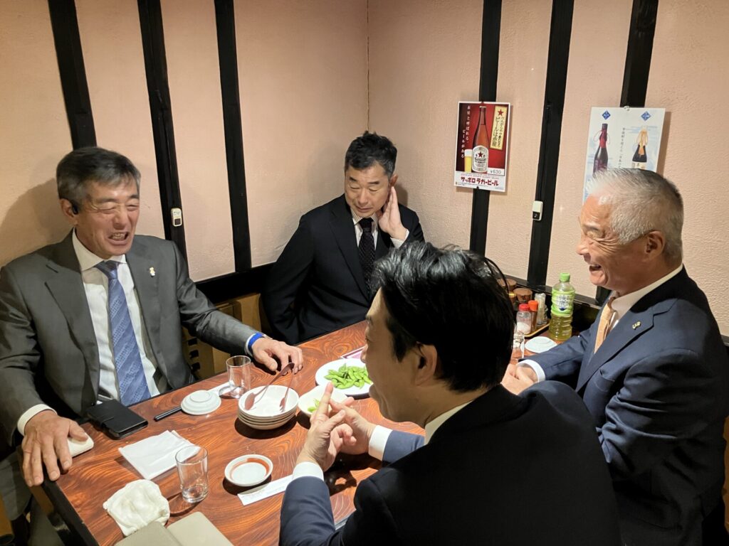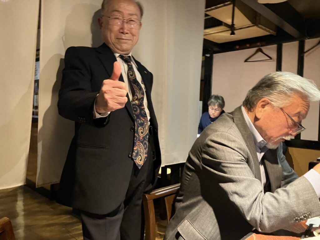 食事なし、午後5時からの例会ですが、例会後近くにある「べんがらや」で一緒に食事団欒をしました。これはライオンテーマL前田のセッティングです。例会では25周年のL田中と20周年のL宮澤にマイルストーン.シェブロンアワードが贈られました。